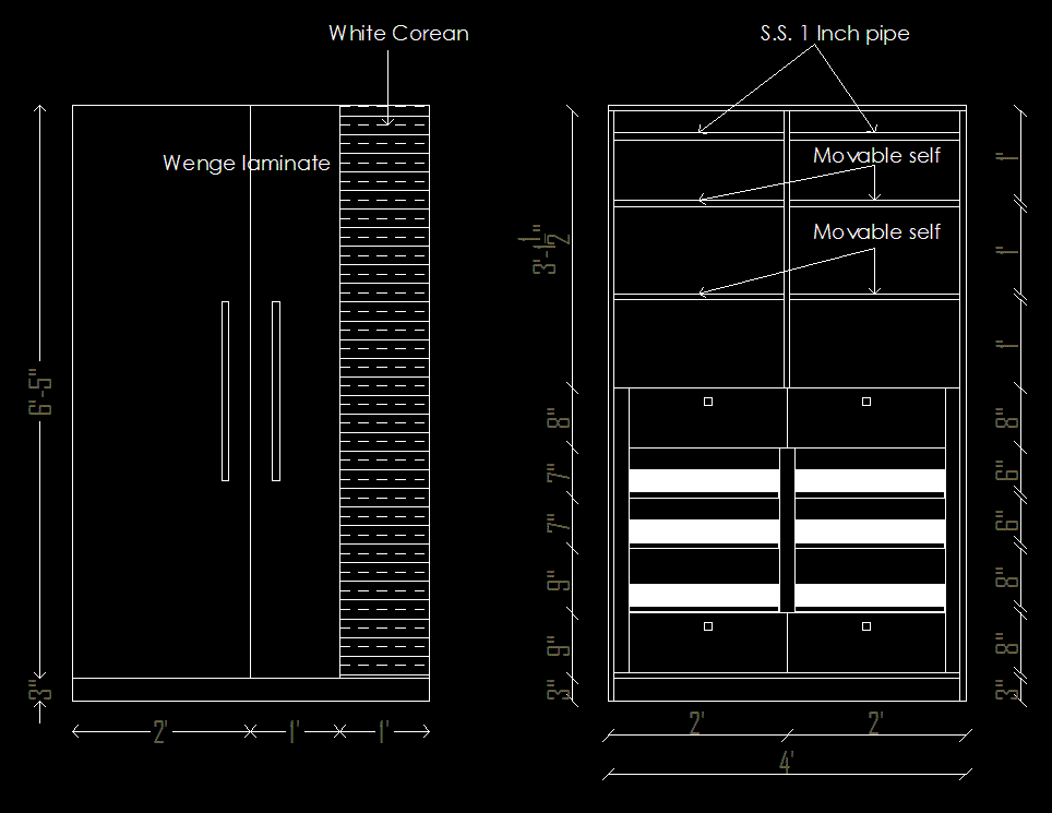 2 Door Cupboard CAD Drawing for Interior and Furniture Design