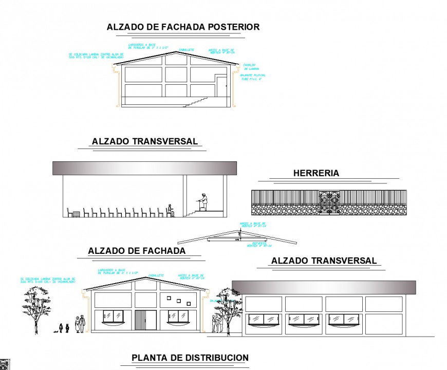 Elevation commercial building plan layout file, landscaping detail in tree and plant detail, furniture detail in door and window detail, stone detail, stair section detail, front elevation detail, left elevation detail, right elevation detail, back elevation detail, etc.