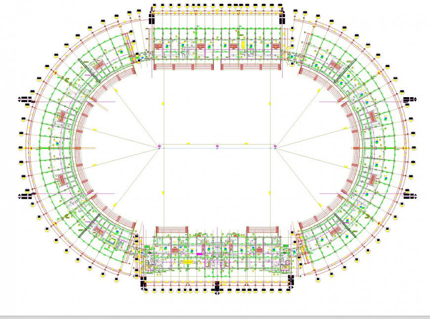 Architect Stadium plan detail layout file, centre line detail, cut out detail, section line detail, stair detail, dimension detail, naming detail, furniture detail in door and window detail, etc.