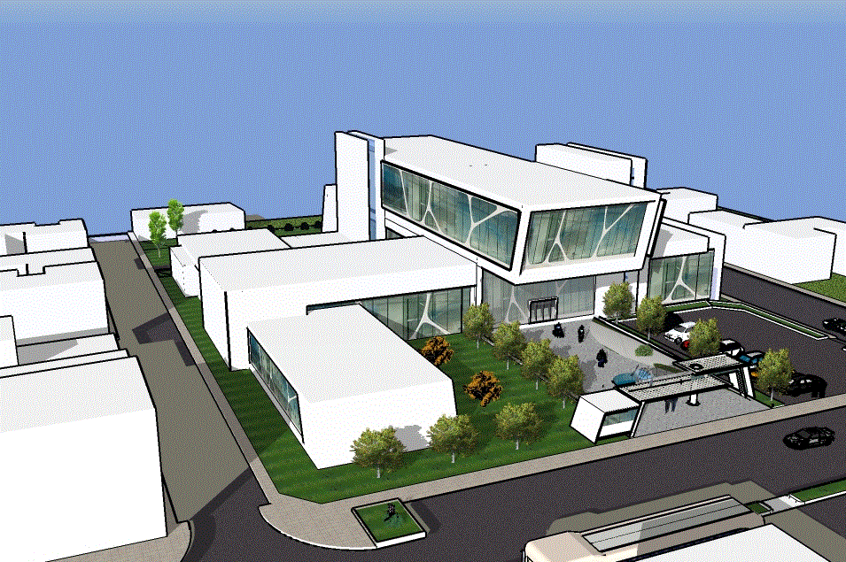 The drawing highlights the main hospital blocks, treatment zones, outdoor landscaping, parking areas, and modern facade architecture. Each section is carefully modeled to represent realistic design proportions, providing architects, civil engineers, and healthcare planners with a reliable reference for hospital projects.