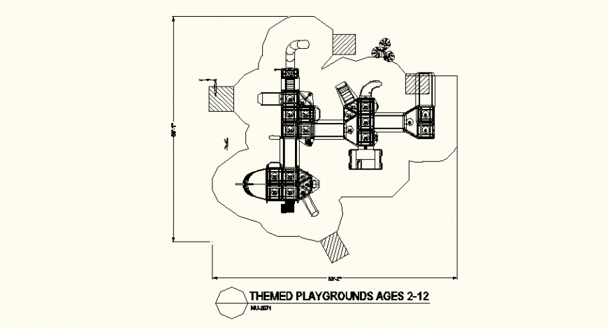 Ellipse shaped themed park dwg file, top view detail, hatching detail, dimension detail, hatching detail, amentias detail, boundary detail, etc.