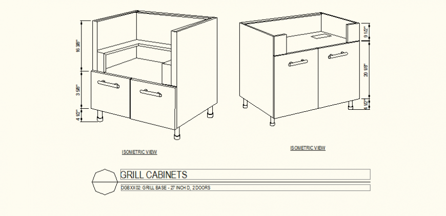 Grill cabinet detail plan autocad file, dimension detail, isometric view detail, door detail, drawer detail, door detail, etc.