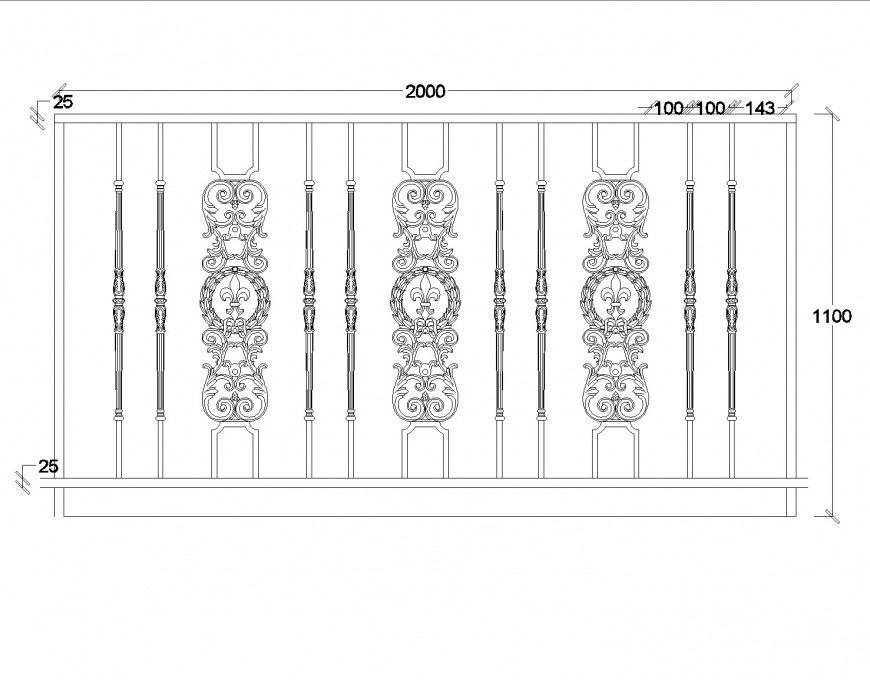 Ornate balcony railing autocad file, dimension detail, naming detail, architect design detail, etc.