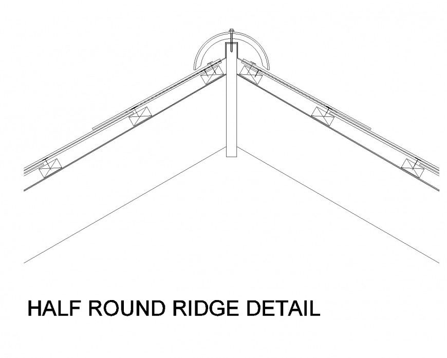 Half round ridge detail dwg file, front elevation detail, king post detail, etc.