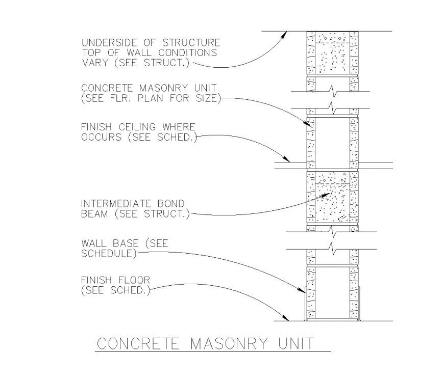 Concrete masonry unit detail dwg file, section line detail, cut out detail, naming detail, concrete mortar detail, etc.