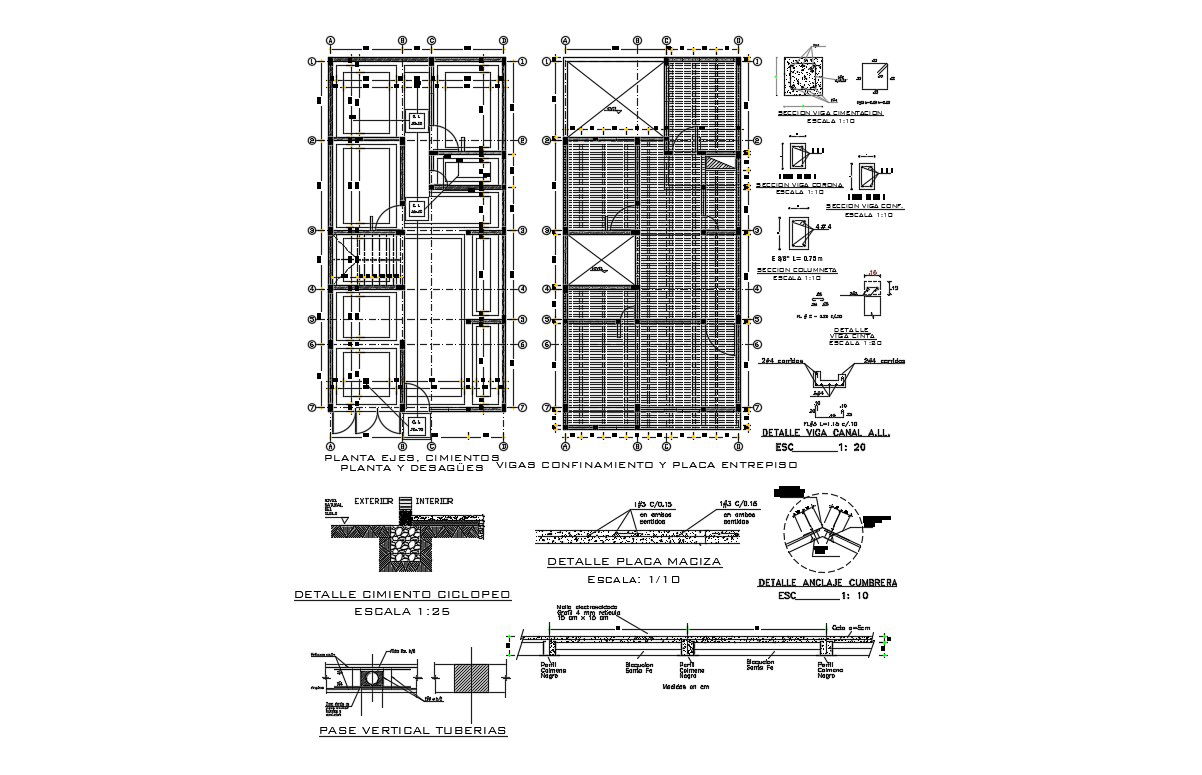 House Construction Design In DWG File layout plan, elevation details, section plan, CROSS-SECTION, FOUNDATION DETAIL, SOLID PLATE DETAIL, House Construction Design In DWG File