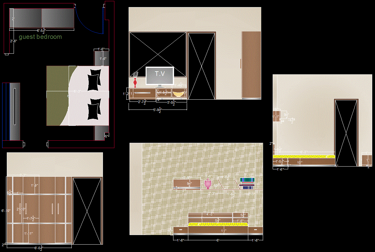 Guest Room Interior AutoCAD Drawing with Wall Elevation Details
