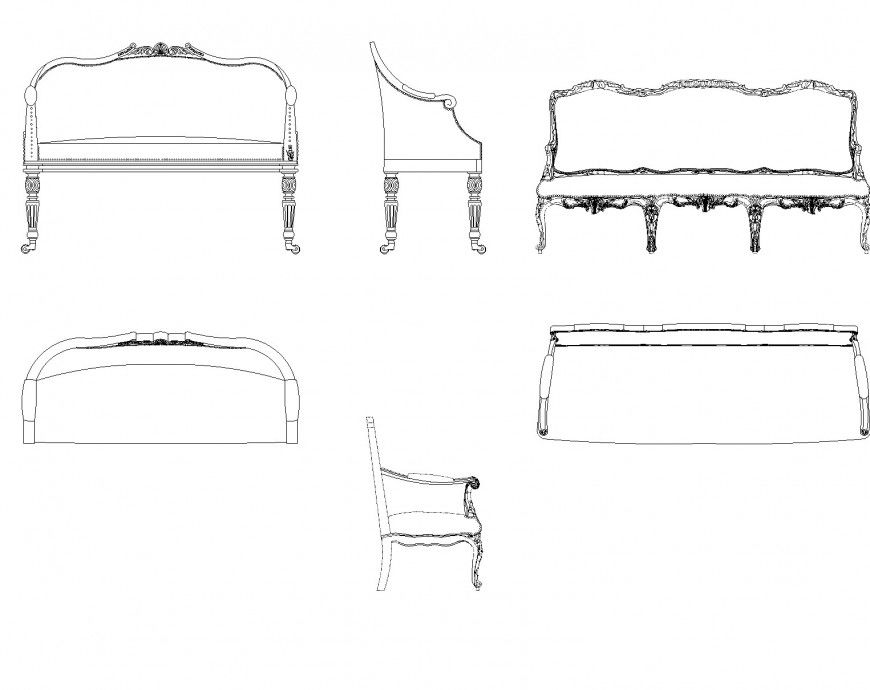 Exquisite sofa cad block dwg file, front elevation detail, left side elevation detail, right side elevation detail, etc.