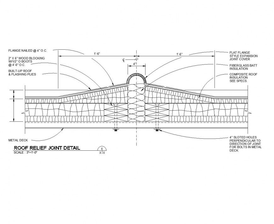 Roof relief joint detail dwg file, dimension detail, naming detail, section line detail, section line detail, bolt nut detail, scale 1:100 detail, etc.