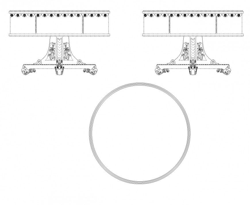Round table CAD blocks layout file, plan view detail, side elevation detail, arc detail, etc.