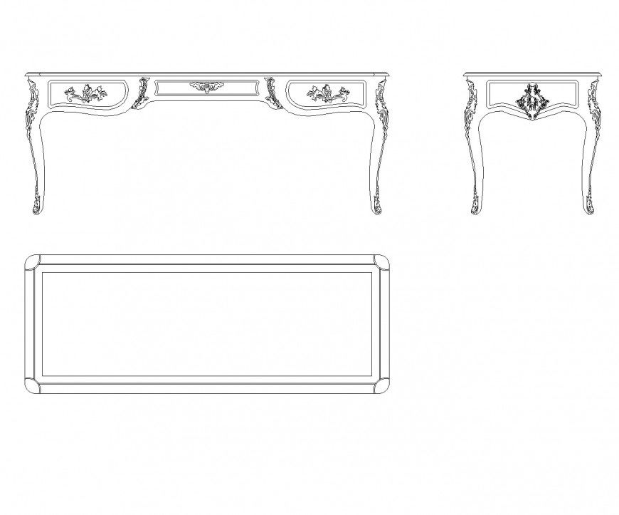 Detail Writing desk layout file, front elevation detail, side elevation detail, top view detail, etc.