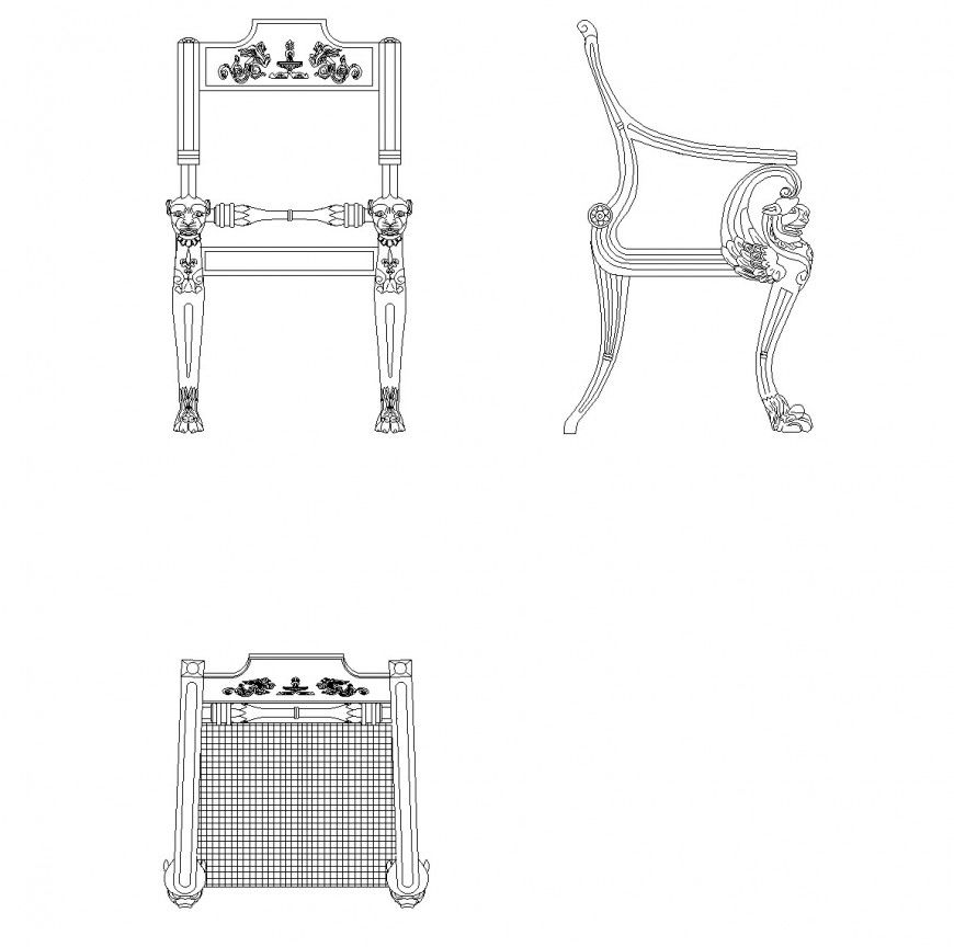Tiger shape armchair plan layout file, top view detail, front elevation detail, side elevation detail, etc.