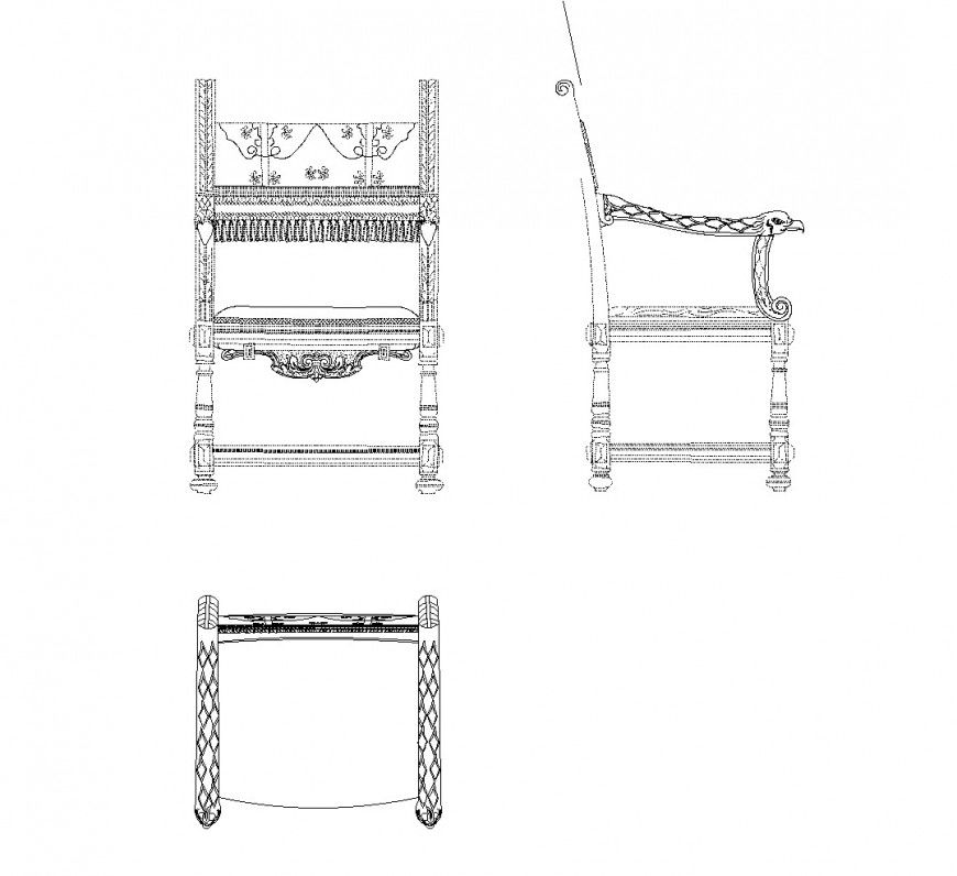 Flower design chair plan autocad file, top view detail, front elevation detail, side elevation detail, etc.