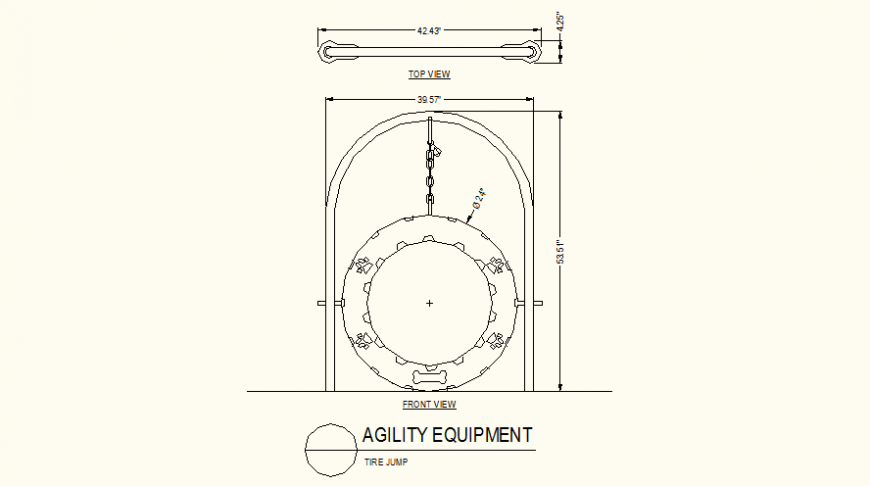 Tire jump detail plan autocad file, top view detail, dimension detail, front elevation detail, steel vhain detail, etc.