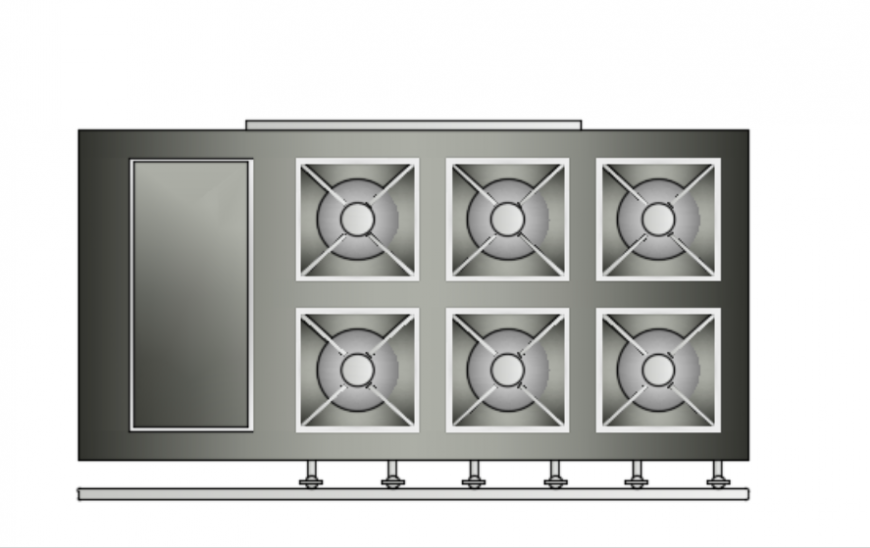Gas stove details dwg file, here there is gas stove details , top view details , 6 burner stove in auto cad format