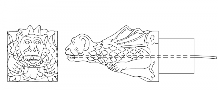 Wall fountain design, lion style construction of a fountain, ancient style construction of fountain in 2d format