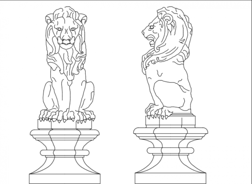 Garden ornament details 2d,lion style construction decorative structure in garden , 2d details