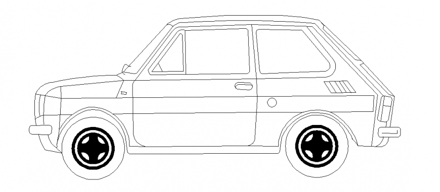 Elevation of car design dwg file in elevation of car design with view of two wheel on ground with main body of car with door view in design.
