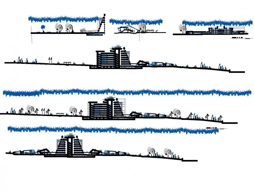 Section Moquegua plan dwg file, section A-A’ detail, section B-B’ detail, section C-C’ detail, landscaping detail in tree and plant detail, stair section detail, roof section detail, etc.