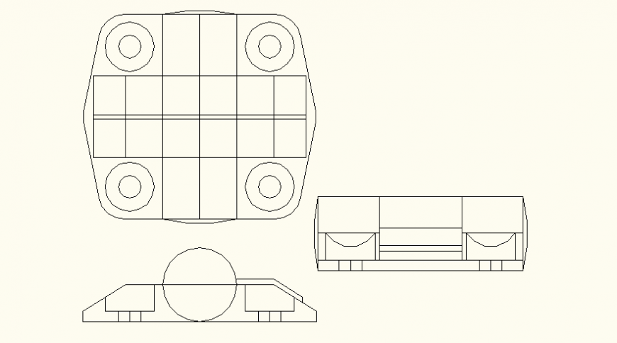 Hinge detail plan layout file, top view detail, front elevation detail, etc.