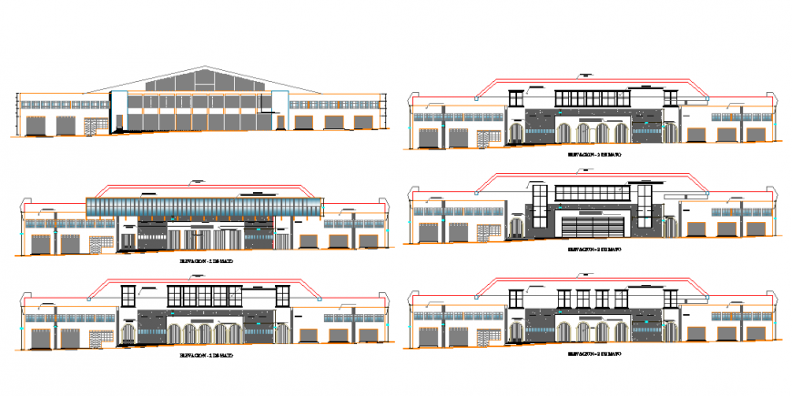 Building Elevation Projects detail in autocad drawing & This elevation drawing design in draw in autocad format, & All side Elevation detail mansion the drawing & Outer side elevation detail & Dimension detail.