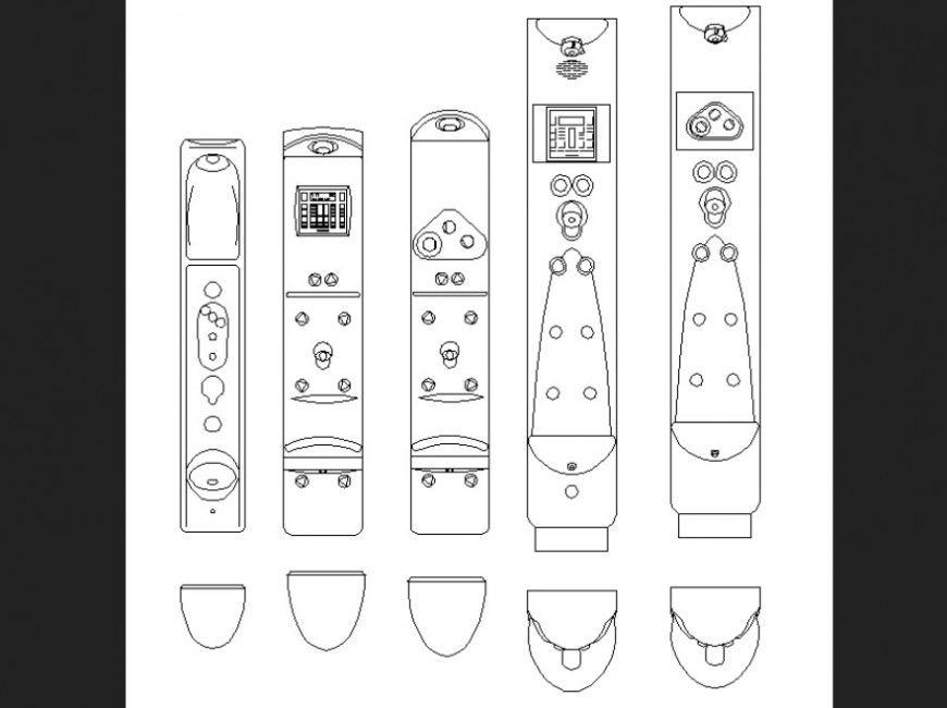 Shower panel plan detail dwg file. The front and top view plan with detailing, etc.,