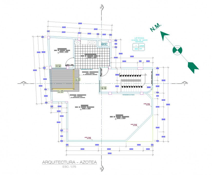 Planning trade accommodation layout file, section lien detail, dimension detail, north direction detail, scale 1:75 detail, leveling detail, stair detail, hatching detail, etc.
