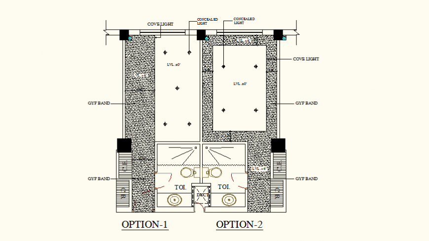 Ceiling detail elevation autocad file, dimension detail, concrete detail, cut out detail, naming detail, hatching detail, toilet detail, sink detail, etc.