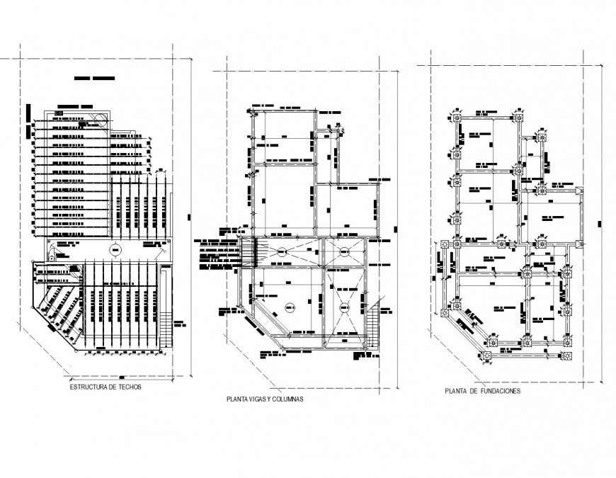 Foundation and roof plan dwg file, hidden lien detail, dimension detail, naming detail, cut out detail, foundation numbering detail, stair detail, reinforcement detail, bolt nut detail, etc.