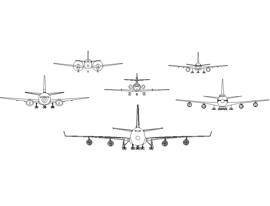 Plane plan with detailing dwg file. The front elevation with different sizes. Plan with detailing of wheels, glass window, etc.,