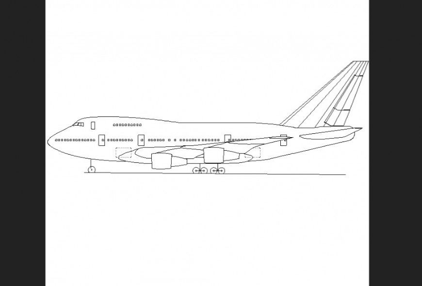 Airplane plan with detailing dwg file. The standing plane with detailing of door, window, wheels, etc.,