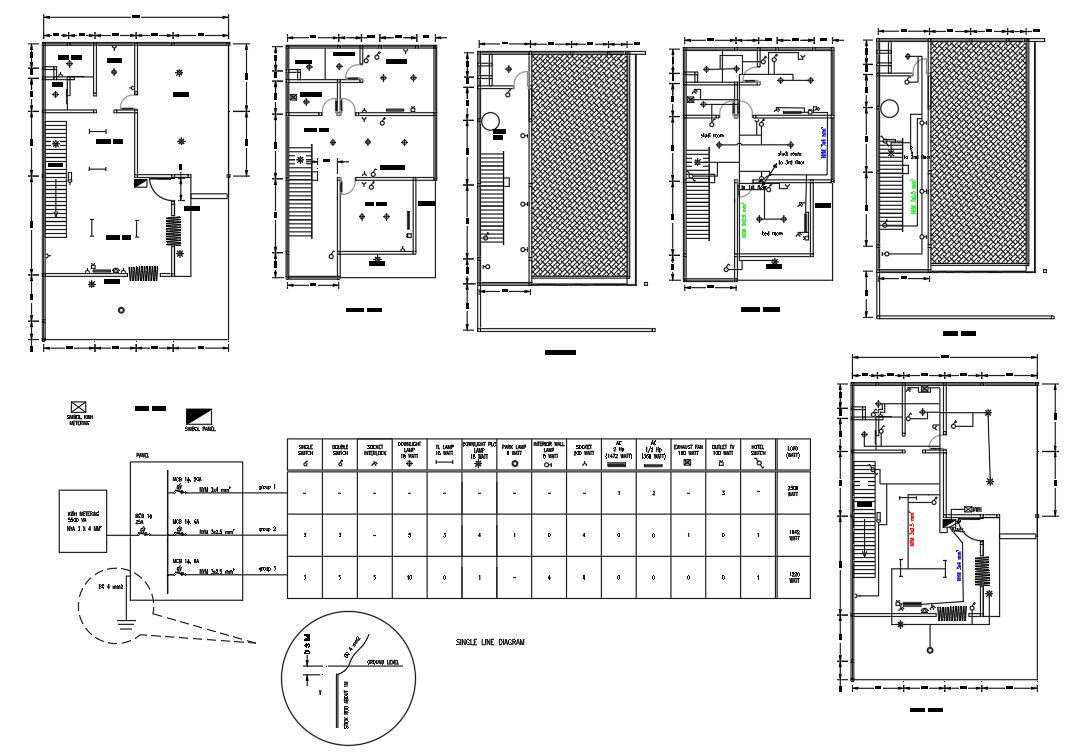 Electrical House layout details in kitchen , bedroom, study room, interior wall lamp ,Electrical House layout design draw in autocad format.