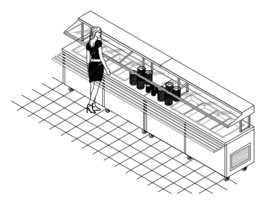 Serving counter details 2d,here there is front and top view detailing of a bakery and serving counter, display counter area details