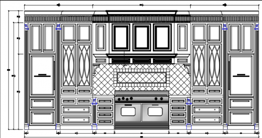 Custom kitchen design,kitchen front elevation details, front kitchen platform and cabinet details are shown , crockery details etc in auto cad format