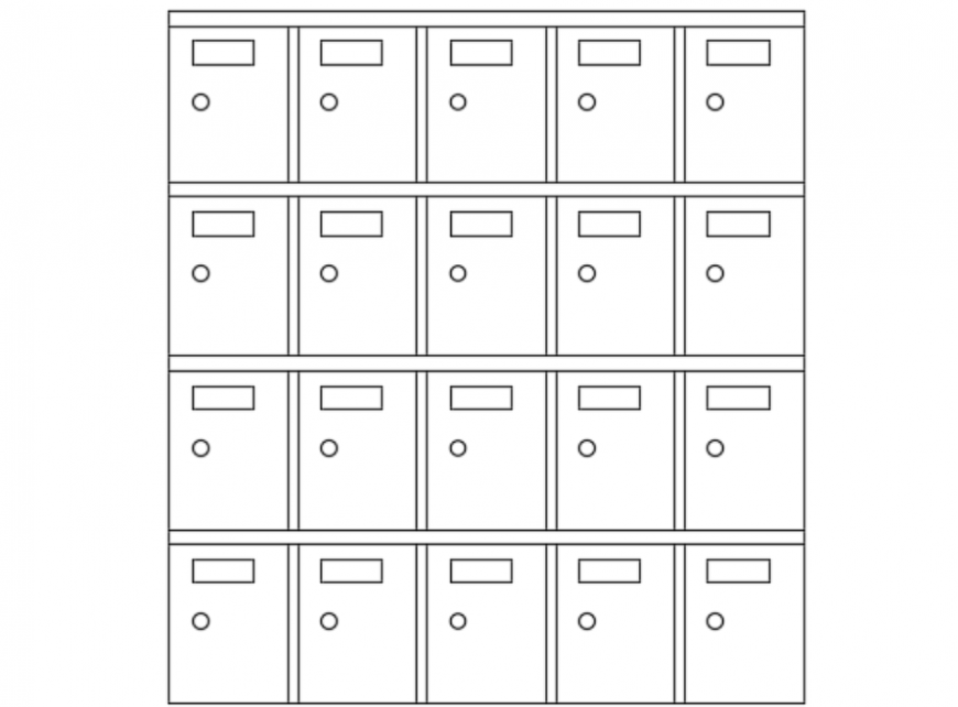 Furniture lockable storage unit,complete inner view details of a locker and front elevation details