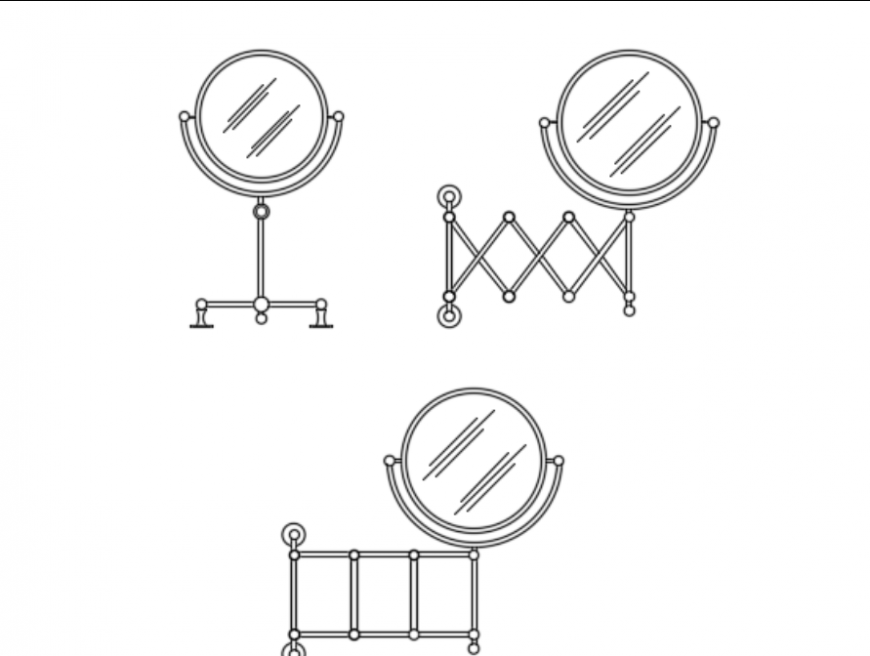 Bathroom shaving mirrors set file, round mirror with stand detailing in 2d auto cad format