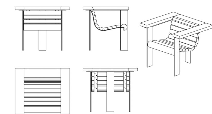 Garden chair design,here there is 2d detailing of chair , wooden chair detailing, all sides of elevations are shown