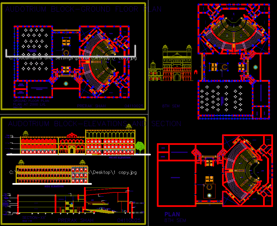 Multiplex Auditorium 80x50m AutoCAD DWG with Plan Elevation Section