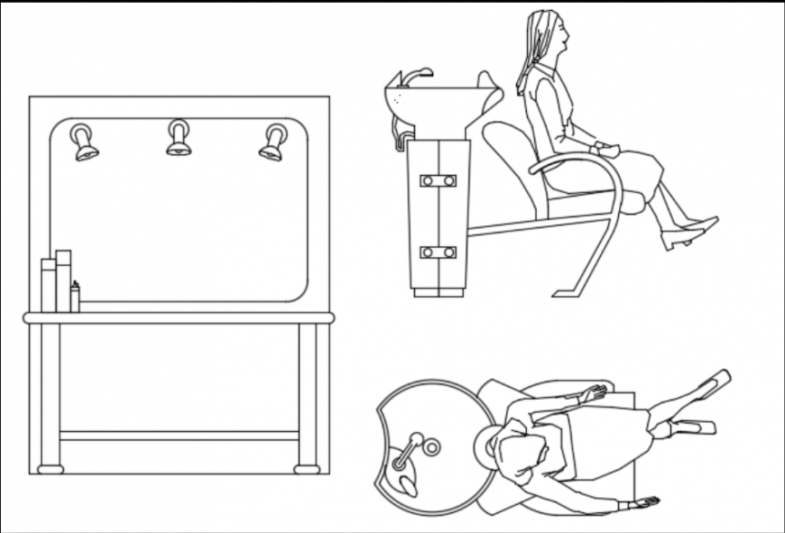 Hair salon furniture dwg file,here there is top view detail of hair saloon furniture , wash basin and other furniture required in hair saloon