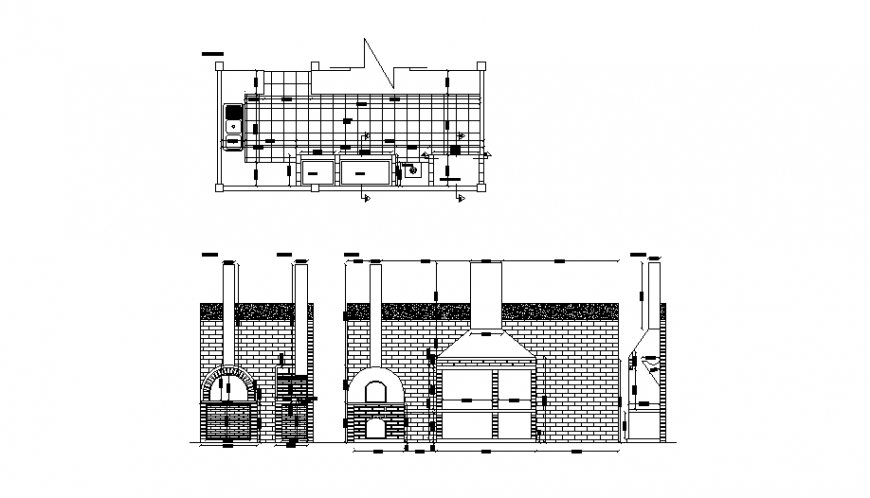 Outdoor bbq and clay oven,here there is top view detail of bbq , complete detailing in auto cad format