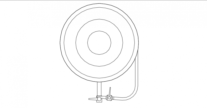Hose reel front view,here there is 2d detail and design of a reel , pipe in 2d format