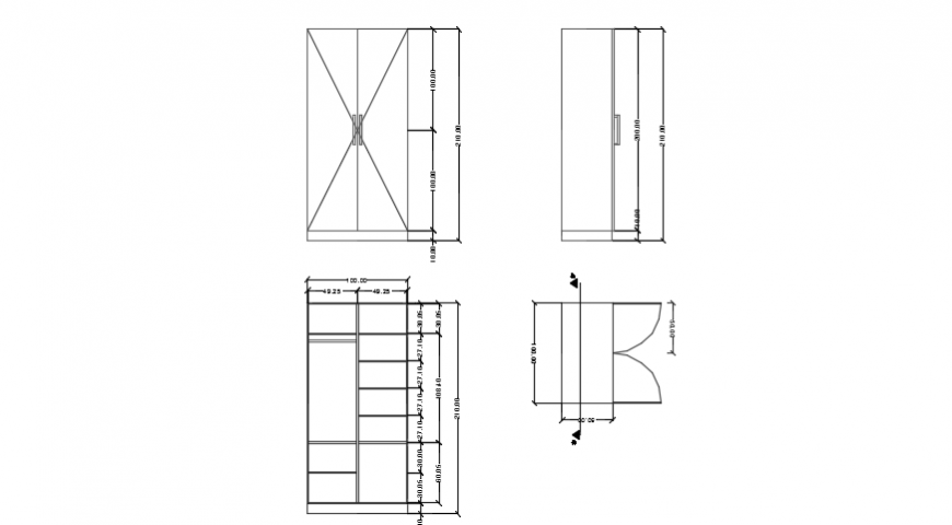 Wardrobe complete sectional detailing,side view and front elevation details of latest construction of wardrobe with sizes