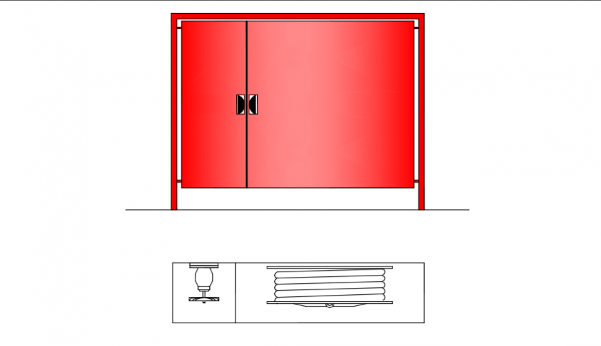 Fire hose cabinet, material finish elevation of a fire hose cabinet detailing , top and front view details