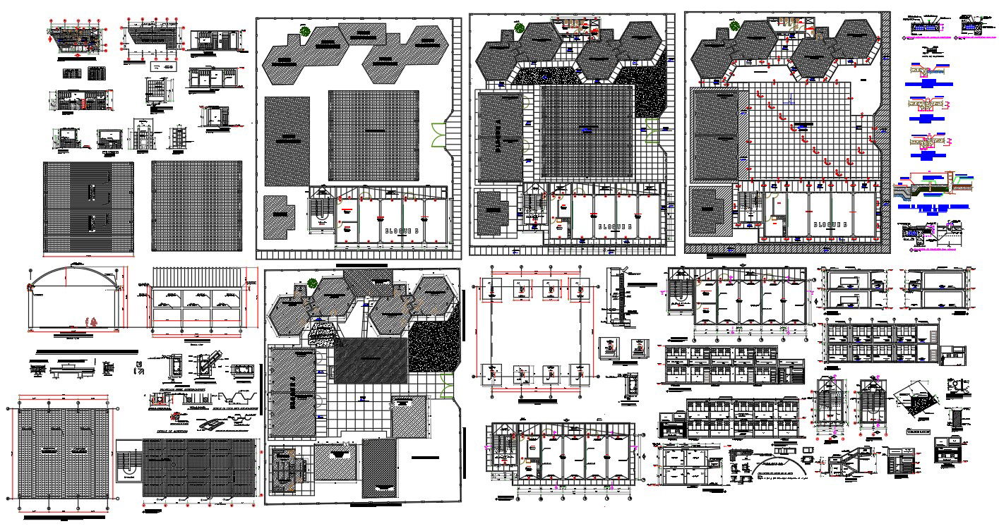 College campus details in a layout plan, wooden details, garden, toilet,section plan, beam details, staff room, sport ground , College campus design draw in autocad