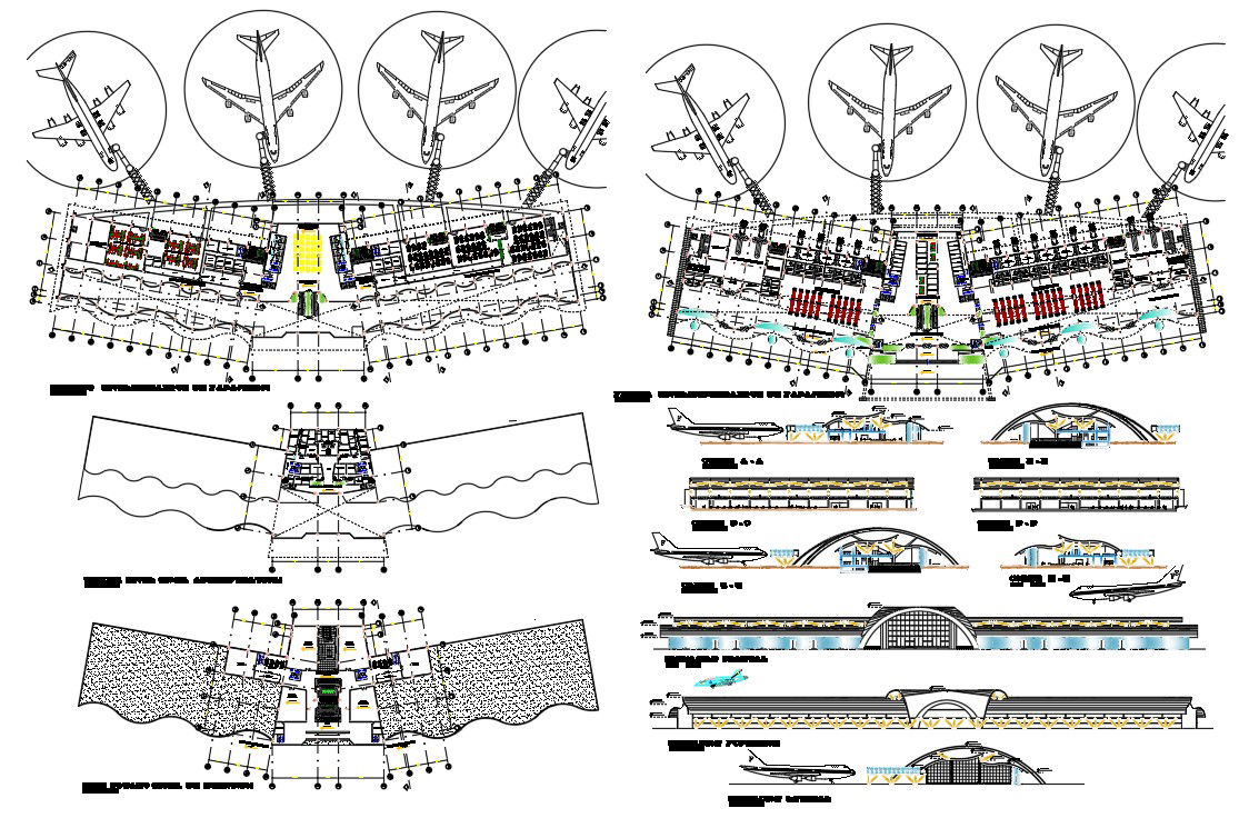 Airport Project Download file, The architecture layout plan, roof plan, section plan, elevation design and structure plan of Airport project... Airport Project Design.