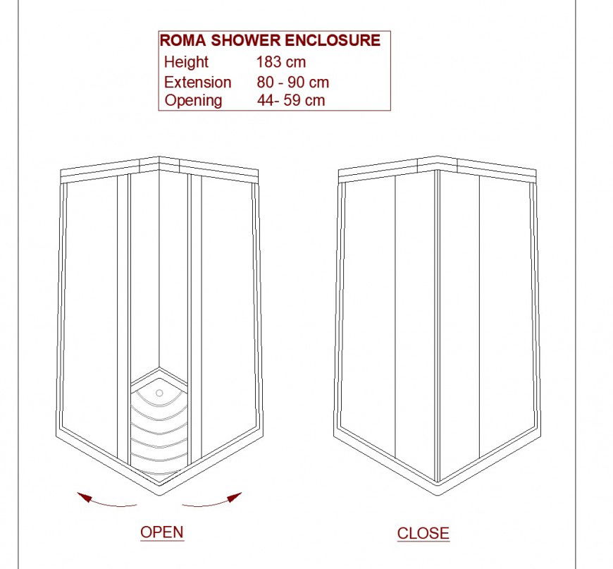 Shower 3 D plan dwg file, specification detail, open detail, closed detail, etc.