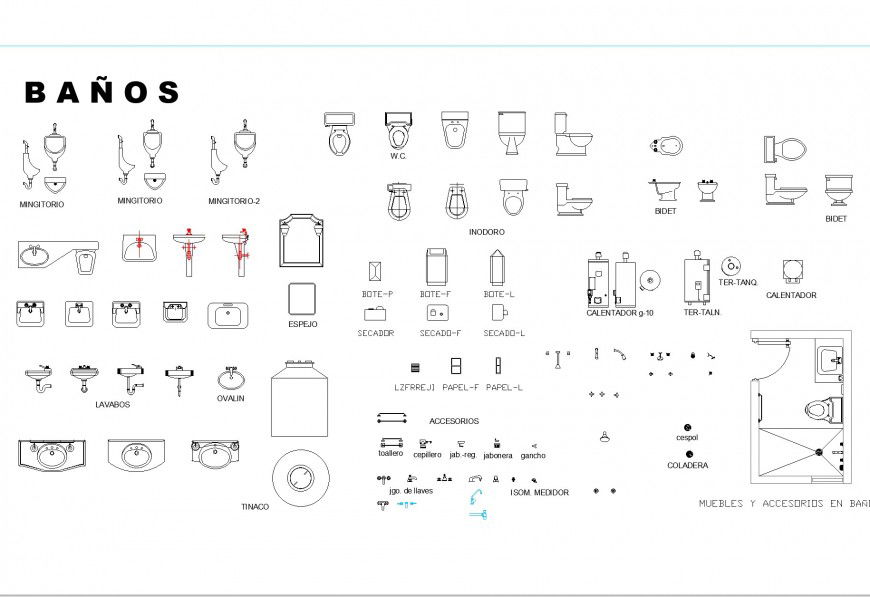 Bathroom fixtures plan autocad file, plan, elevation and section urinal detail, plan, elevation and section sink detail, tank elevation detail, cut out detail, etc.