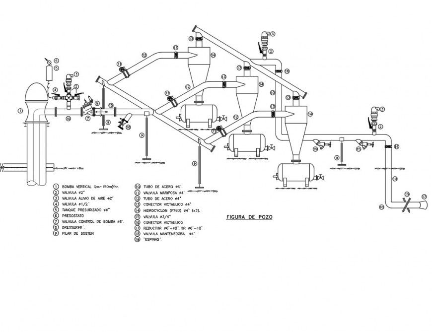 Plumbing box detail elevation layout plan, pipe detail, tank detail, naming detail, specification detail, connection detail, hatching detail, etc.