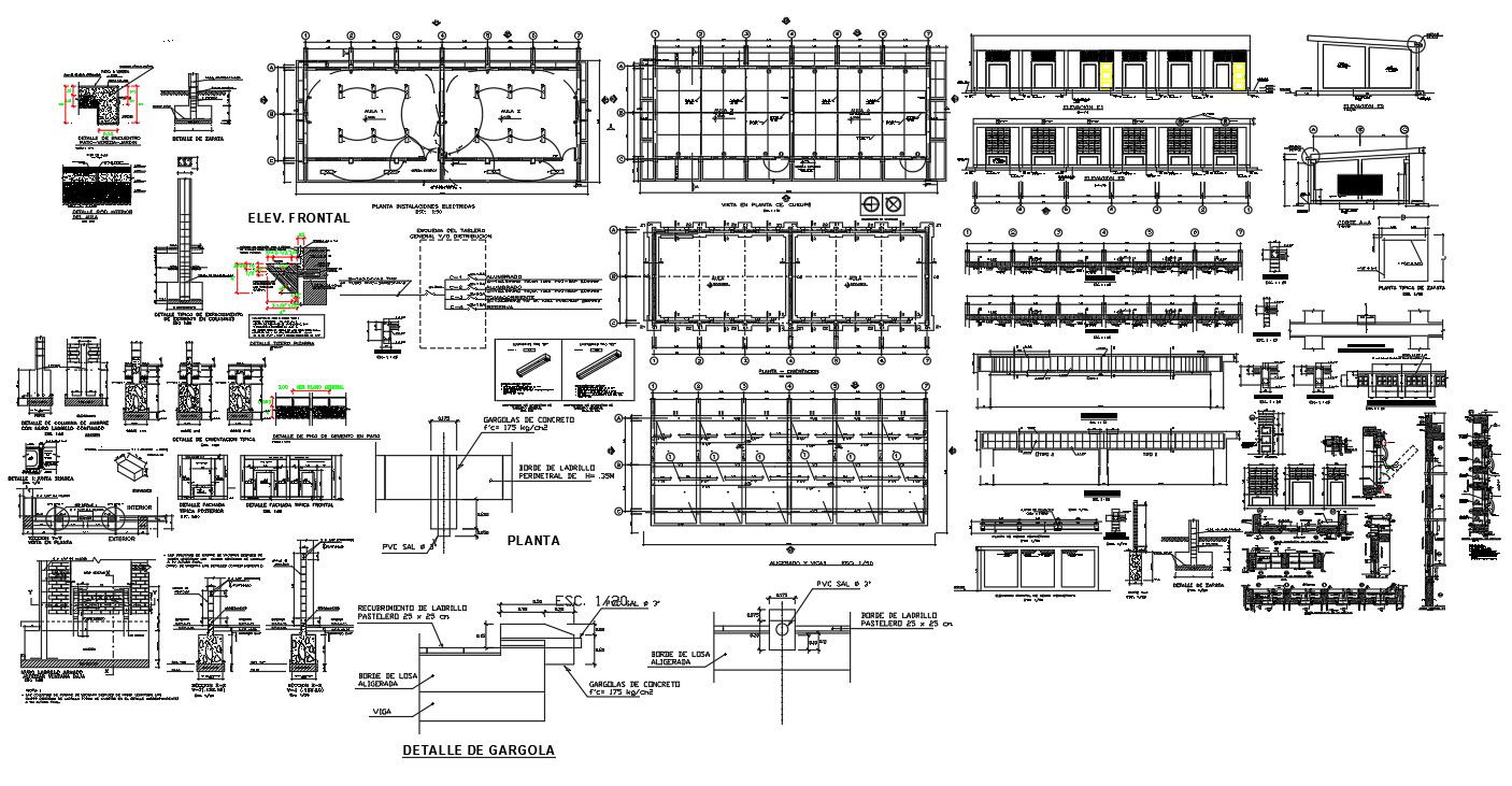 University details in a layout plan, electrical details, wooden block details, section plan, beam details, garden, University design draw in autocad format,