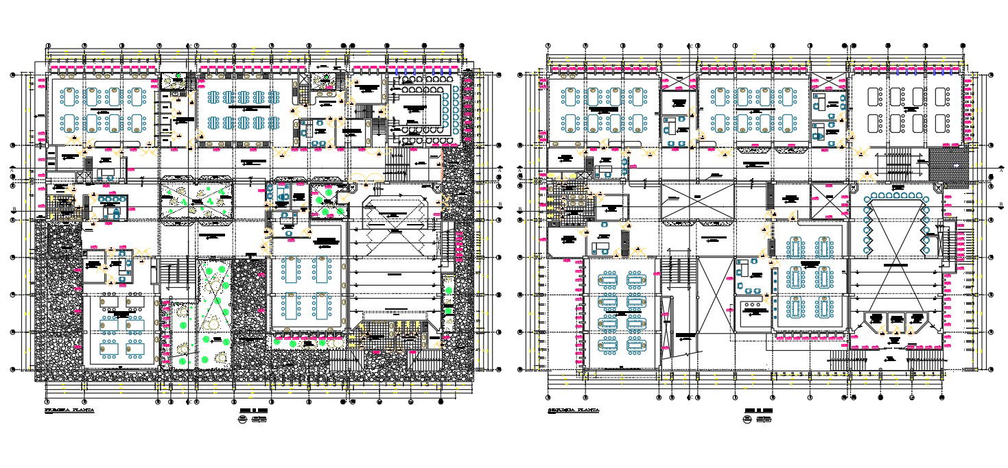 Educational institution layout details in a class room, teacher's room, computer lab, laboratory room, garden ,toilet details, Educational institution layout design drawn in